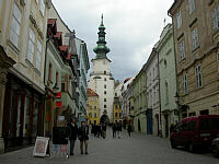 | Photos taken on Bratislava streets in October 2002. I know the correct spelling but cannot reproduce names exactly (does not work on all browsers...), they would probably look funny to people speaking Slovak and Czech... Please click on the image to enlarge it. | |||